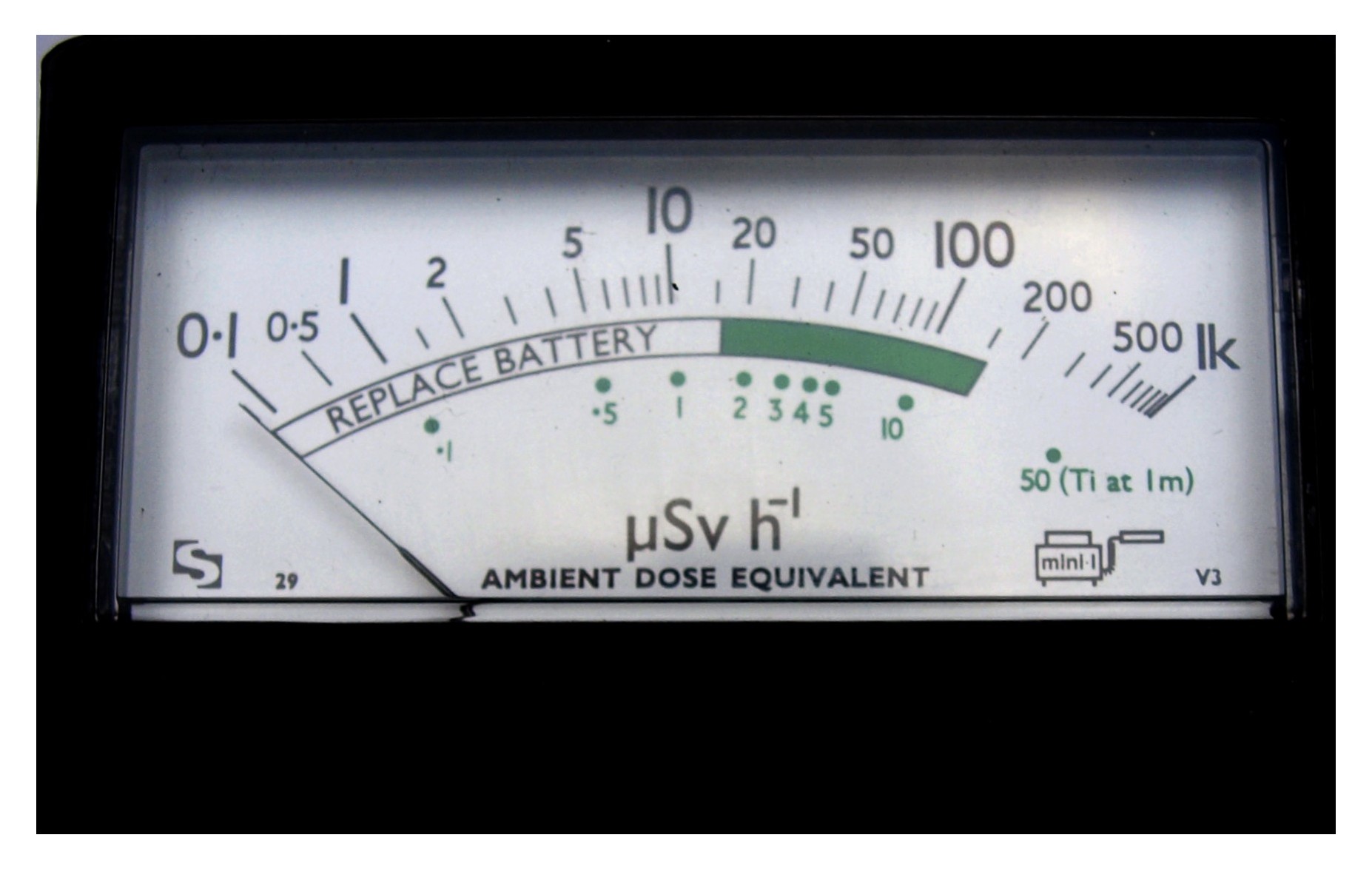 bigger brothers accuracy and ease of use are key features. It has a single function control knob and the semi-logarithmically scaled meter - another classic Mini Instruments feature - reads from 0 to 1000 μSv/h